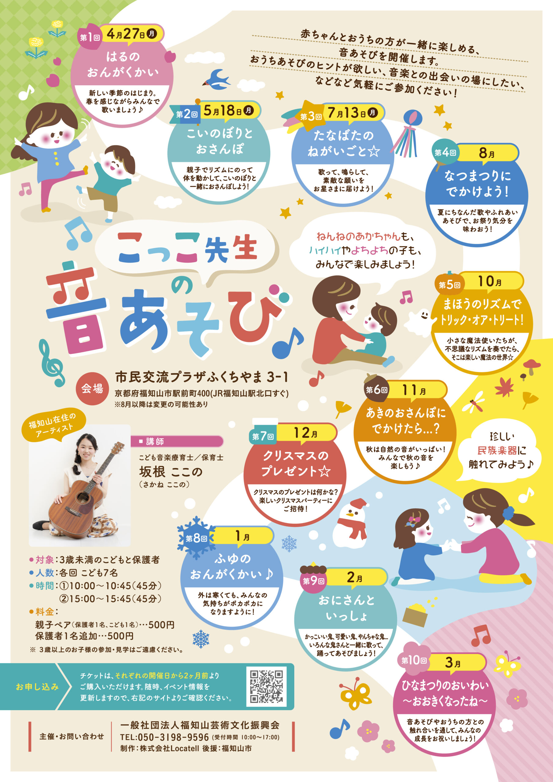 「【2026年4月〜2027年3月開催】こっこ先生の音あそび」公演のチラシを制作しました。