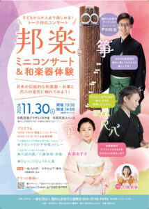 「邦楽ミニコンサート&和楽器体験」公演のチラシを制作いたしました。