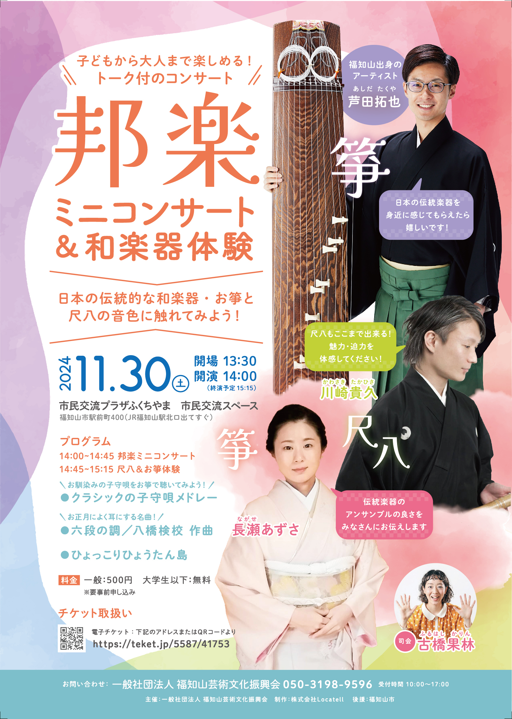 福知山市出身の箏奏者・芦田拓也さんをお迎えし、子どもから大人まで楽しめる!トーク付きのコンサートを開催します!